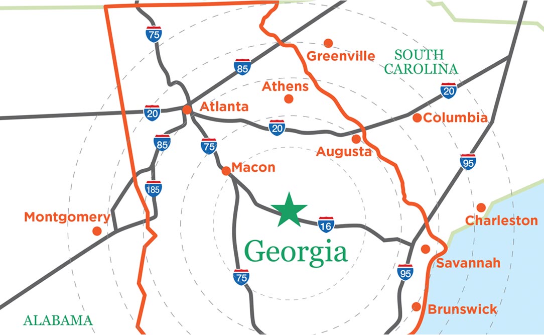 Heart of Georgia Mega Site is ideal for large-scale warehouse, distribution and manufacturing facilities, with a workforce of almost 400,000 within 60 miles.